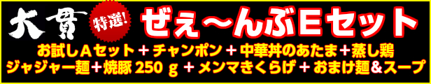 商品名:全部Eセット(メンマきくらげ付き) 価格:9540円 在庫がありません |