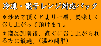 もしくは、通常電子レンジ対応パックでのお届けとなっています焼飯(その他の商品は全て真空パックです)を【真空パック】に変更させて頂いて発送させて頂きます。